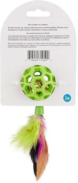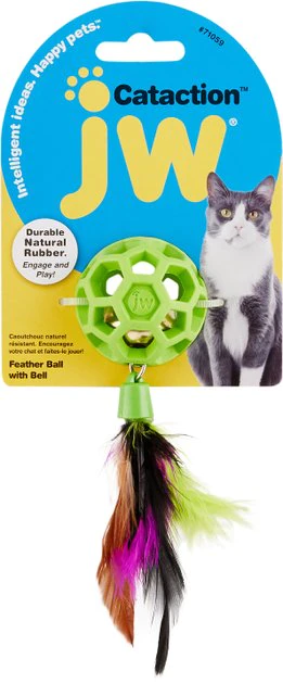 Does Princess love to pounce? Then she just might think the JW Pet Cataction Feather Ball with Bell Cat Toy is the best invention since the can opener! JW Pet added cutouts in their popular mini Hol-ee Roller ball and stuffed it with a large bell. The durable rubber ball also has a large feather for a tail, making it perfect for pulling while she swats.