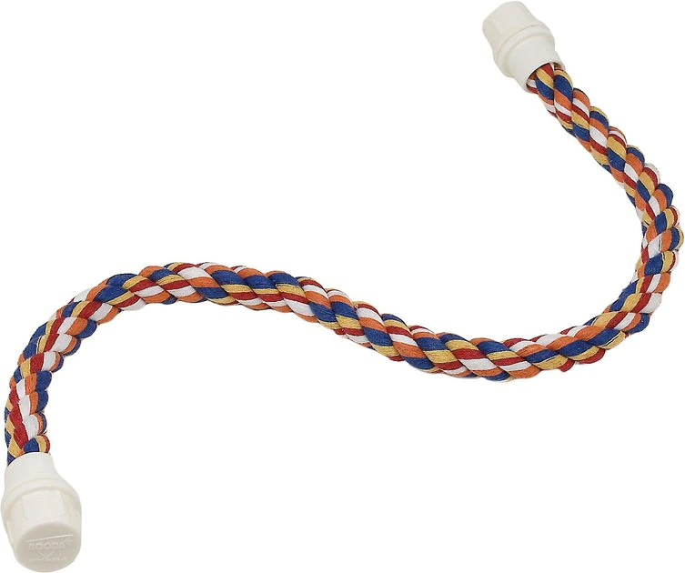 Give your bird a comfortable place to perch with the JW Pet Medium Comfy Bird Perch. It’s a simple, multi-colored rope that you can twist and bend to create all sorts of fun shapes for your pet to explore. Each end easily attaches to a wire cage, and the rope will hold its shape without exposing dangerous wires. Pet birds need perches of varying lengths, thicknesses, styles and materials to keep their feet healthy and their grip strong. The JW Pet Medium Comfy Bird Perch makes a colorful and fun addition your bird’s perching choices.