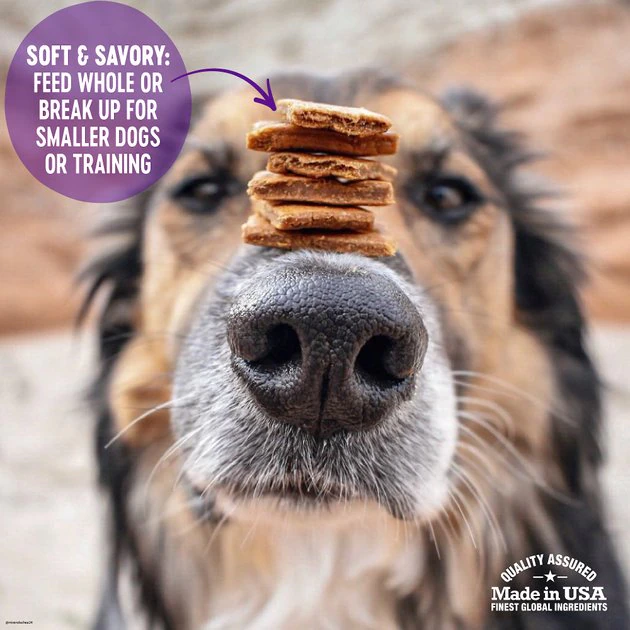 - Soft and savory treats made with real lamb as the very first ingredient, followed by other recognizable ingredients including salmon, chickpeas, carrots, blueberries and more.