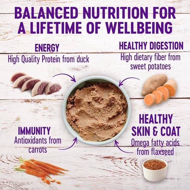 Keep your four-legged friend well-fed with Wellness Complete Health Duck & Sweet Potato. This natural, canned wet food for dogs is packed with premium protein and designed for optimal health. It is crafted for 100% complete and balanced everyday nutrition featuring delicious duck combined with nutrient-rich vegetables. This pate-style wet dog food contains only premium, all natural ingredients and is formulated with essential vitamins, minerals and antioxidants to keep your amigo active and playful.
