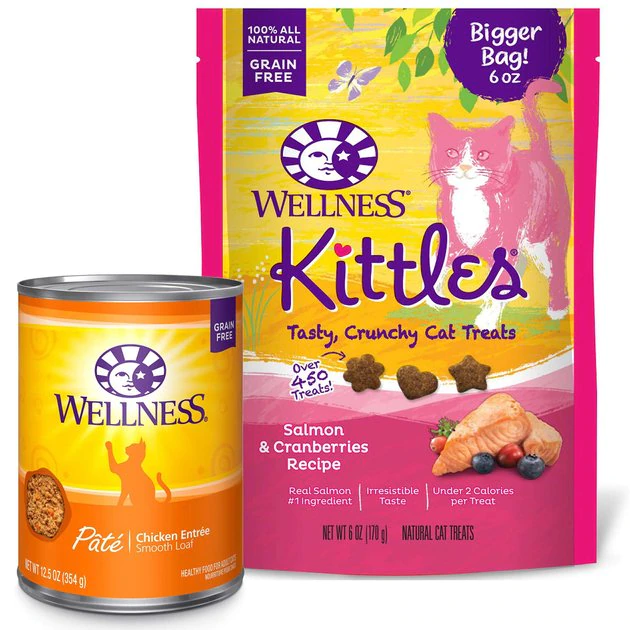 Nourish your kitty’s nose-to-tail well-being with Wellness Complete Health Pate Chicken Entree Grain-Free Canned Cat Food + Wellness Kittles Grain-Free Salmon & Cranberries Recipe Crunchy Cat Treats. Every bite of the canned food is packed with omegas from flaxseeds to maintain a healthy skin and coat, plus antioxidants, taurine, vitamins and minerals to support immunity and overall health. Plus, the “berry” tasty treats are less than two calories each and contain no artificial ingredients, so both you and your cat can feel good about giving and getting them!