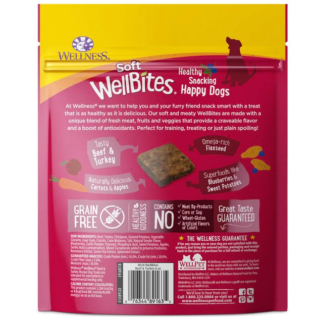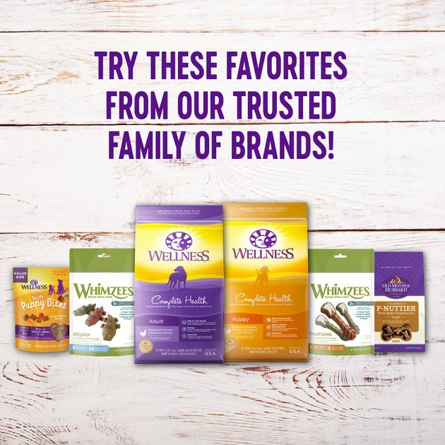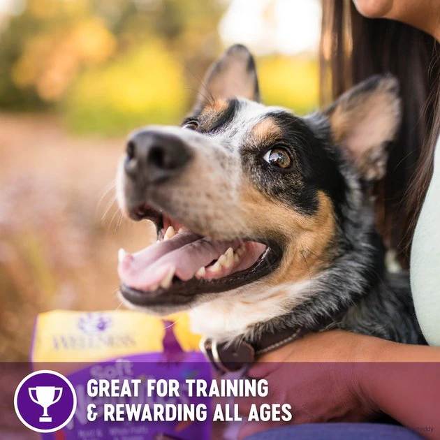 Support your senior sidekick with Wellness Complete Health Senior Deboned Chicken & Barley Recipe Dry Dog Food + Wellness WellBites Beef & Turkey Recipe Soft & Chewy Grain-Free Dog Treats. The balanced, healthy dry dog food is designed to encourage healthy brain development, optimize energy levels and ensure a healthy skin and coat while promoting whole body health. It is developed without any GMOs, meat by-products, fillers or artificial preservatives so you can be sure Rover is always getting the right food. Plus, soft and chewy treats are crafted with a unique blend of healthy ingredients including beef, turkey, carrots, apples and superfoods like blueberries and sweet potatoes. Made without grains, by-products, corn, soy, gluten, artificial flavors or colors, these beneficial bites are paw-sitively perfect for training, treating or just plain spoiling! So, give your furry friend more than just a treat, give him Wellness!