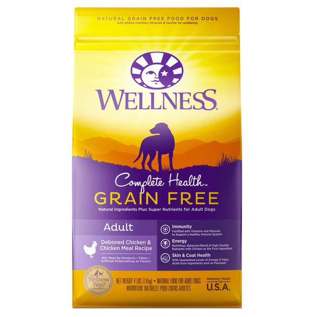 Help your mini mate make the most of mealtime with Wellness Complete Health Chicken. This natural, grain-free dry food for dogs is crafted using carefully chosen ingredients to create complete and balanced nutrition that promotes whole body health. It features premium protein, healthy fats and fiber to support a strong immune system, optimal energy levels and a healthy coat and skin. This dry dog food is fortified with omega fatty acids, antioxidants, glucosamine, probiotics and taurine. It does not contain any GMOs, meat by-products, fillers or artificial preservatives.