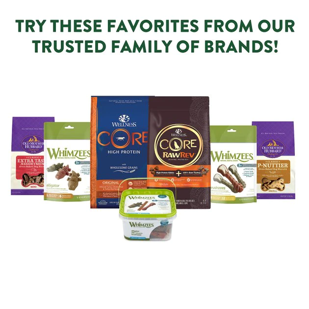 Wellness Large Breed Complete Health Adult Deboned Chicken & Brown Rice Recipe Dry Food is specially formulated to provide whole-body nutritional support for your large breed dog. WHIMZEES Natural Dental Chews Medium Breed Value Box Dog Treats are a gluten-free, vegetarian recipe made with just 6 non-GMO ingredients.